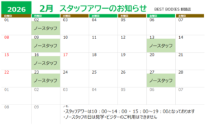 2月の毎週月曜日、第2、第4金曜日はノースタッフとなります。