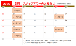 3月の毎週月曜日、第2、第4金曜日はノースタッフとなります。